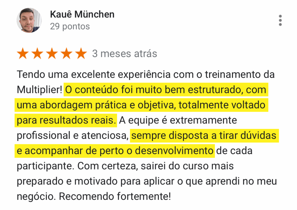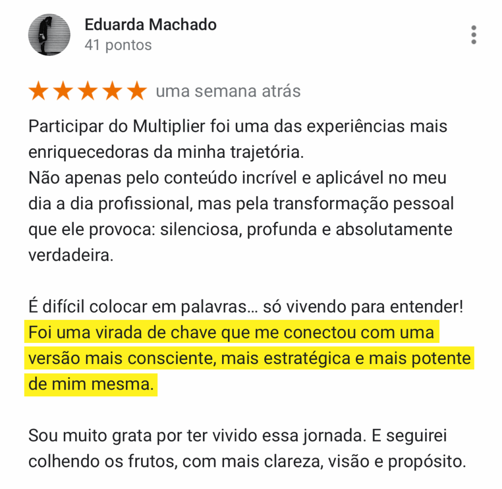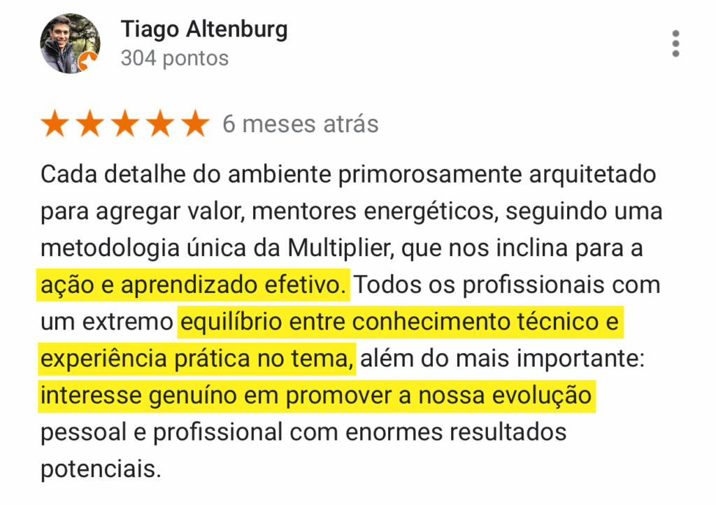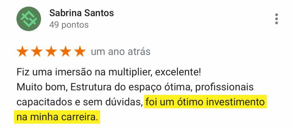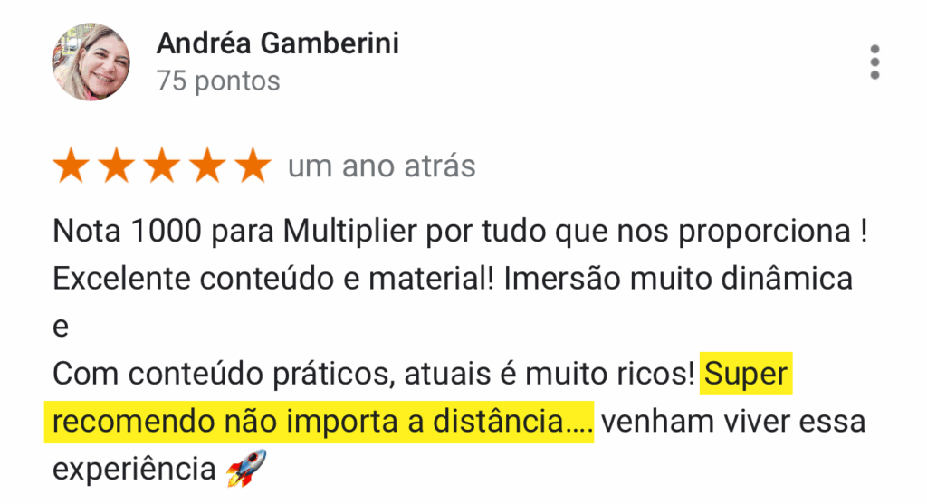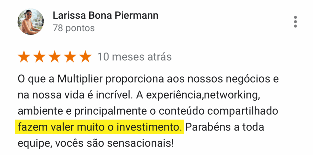Ainda com dúvidas? Veja as mais de mil avaliações 5 estrelas no Google. Aqui, você evolui. #boramultiplicar
