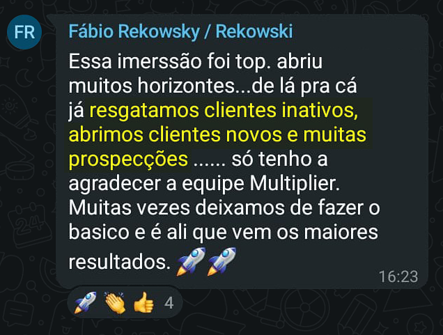 O que você aprende, aplica. E aplica com resultado. Tudo isso guiado por quem faz: Caetano Laudelino, fundador da Multiplier e sócio da GL, o maior escritório de representação do Brasil. Tudo isso num ambiente premium, com representantes que estão no jogo de verdade.